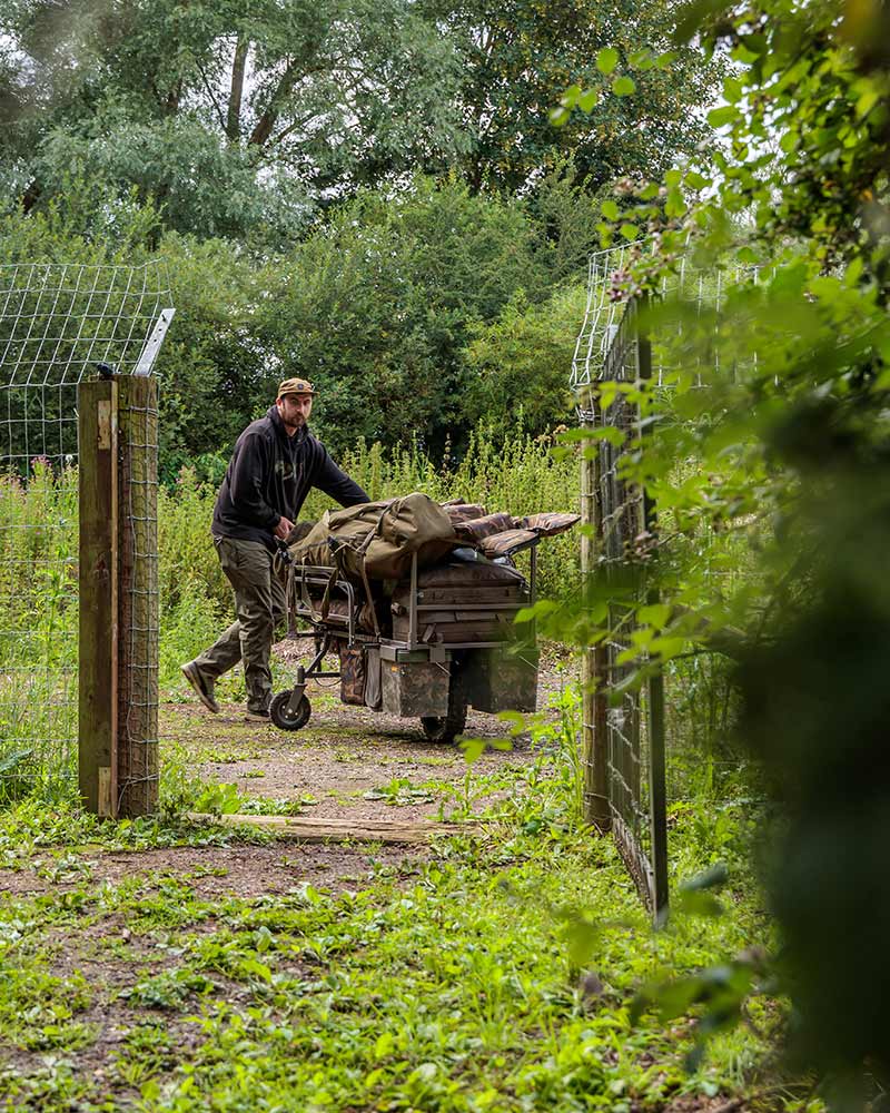 Carrello di trasporto del marchio Fox, modello Transporter Power Plus, speciale per il trasporto degli accessori per il carpfishing.
