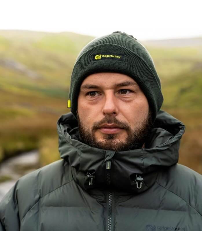 Berretto invernale di alta qualità con pallina del marchio Ridge Monkey a Colore verdespeciale per il carpfishing.