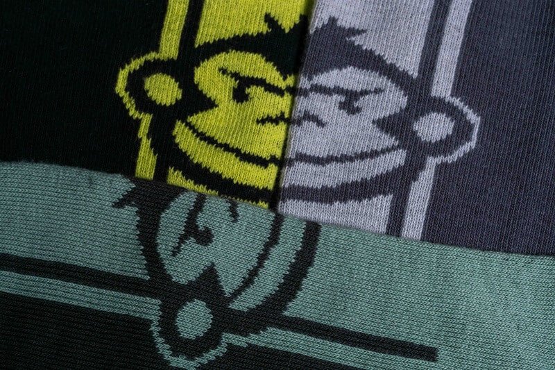 Confezione da tre calzini del marchio Ridge Monkey modello Equipaggio Apearel nella taglia 43-46 nel colore verde, giallo e grigio, soprattutto per il carpfishing.
