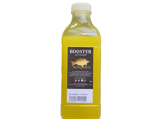 Booster a marchio Royal Baits, gusto Melone e Buccia, perfetto per intingere boilies, pellets e mix spod per il carpfishing.