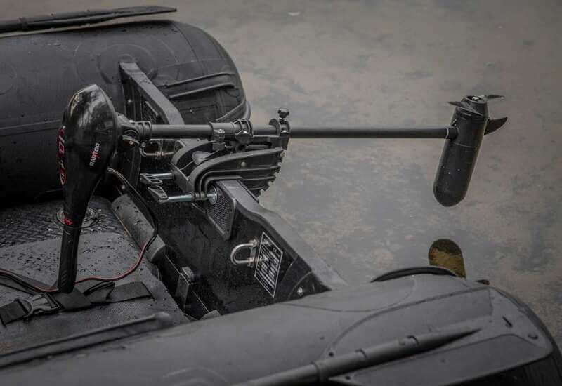 Barca compatta del marchio Raptor modello 200 X-Treme con pavimento in alluminio a colore nero carbonio, speciale per il carpfishing.
