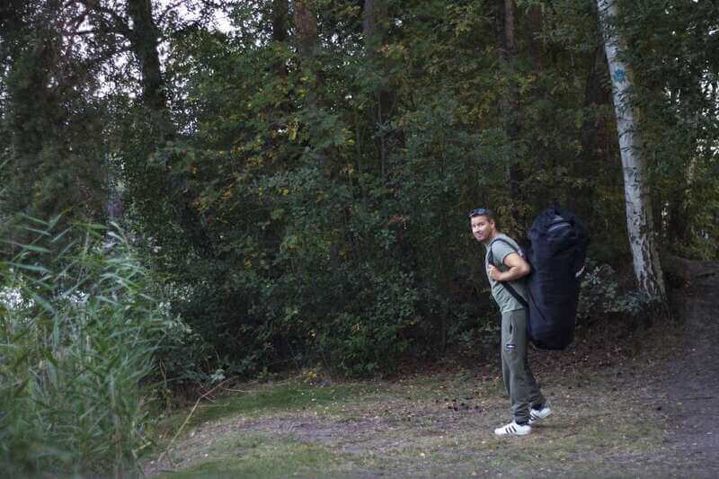 Barca compatta del marchio Raptor modello 200 Veloce con pavimento ad aria a colore verde, specialmente per il carpfishing. Design adatto all'uso in acque piccole e a sessioni veloci.