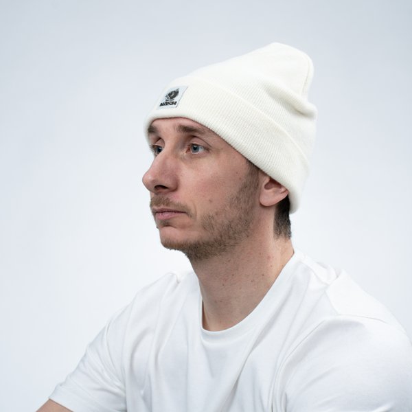Berretto invernale del marchio Nash, modello Make It Happen, a Colore crema con logo di Nash, speciale per il carpfishing.