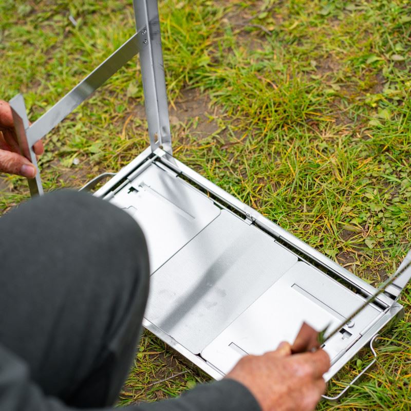 Barbecue portatile a gas del marchio Ridge Monkey modello Grilla Firepit Edition, speciale per il carpfishing. Progettato per l'uso con carbonella, legna o altri combustibili solidi.