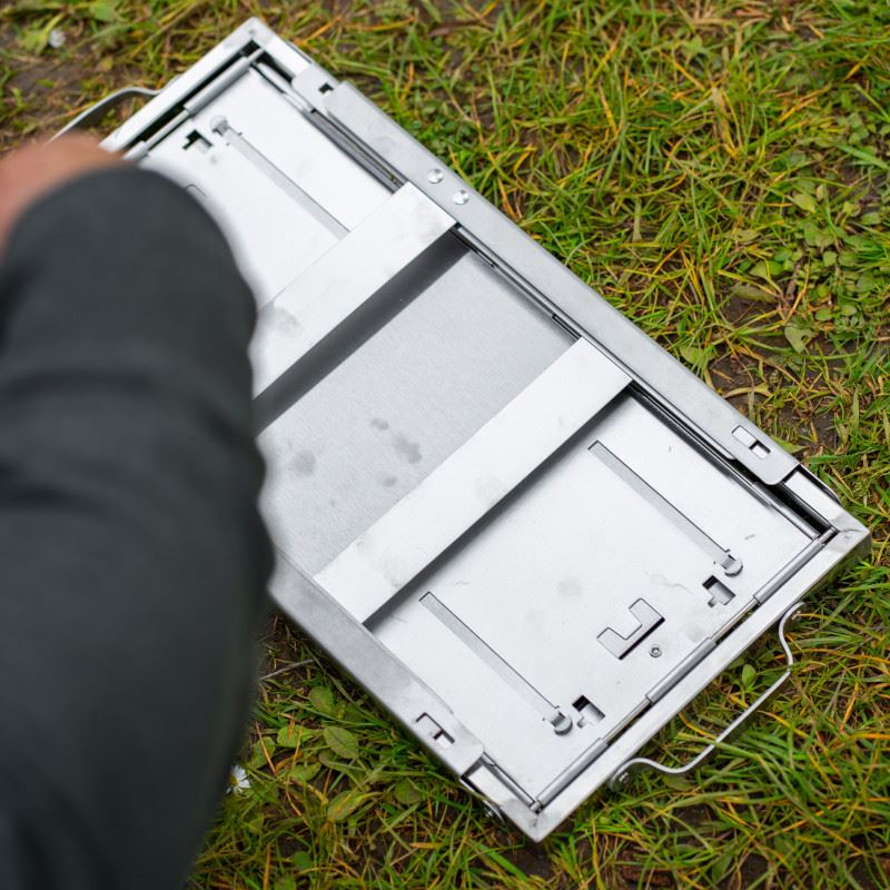 - Griglia in acciaio inox con binario e tavolino in acciaio inox
