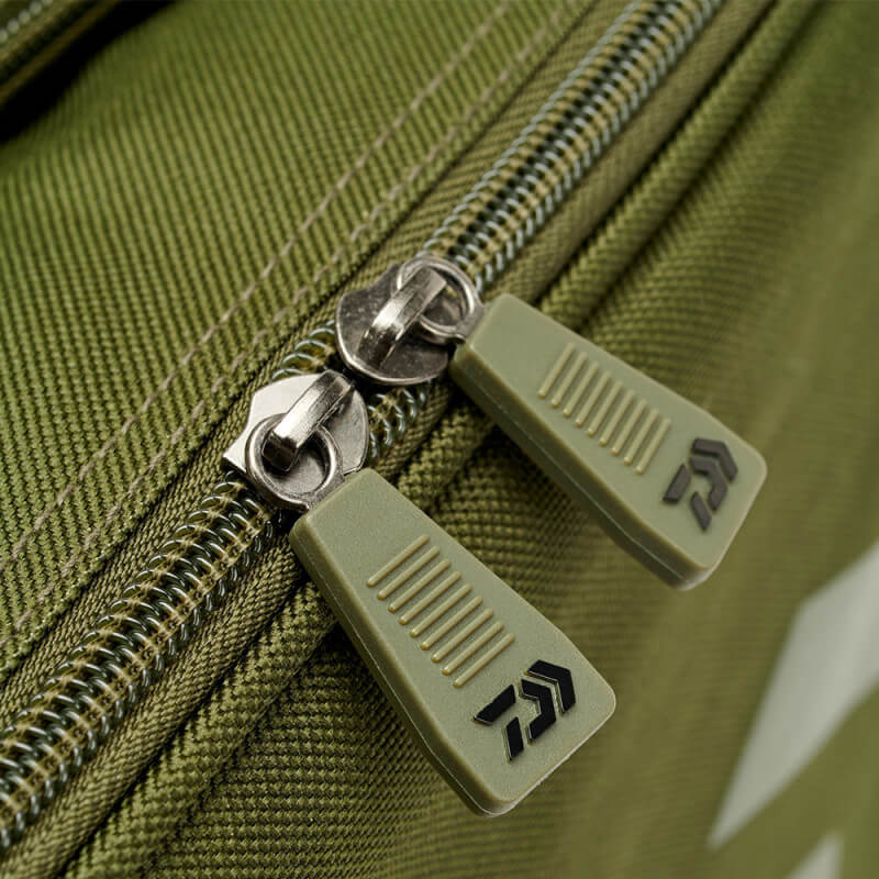 Custodia per accessori con marchio Daiwa modello Vedova Nera a colori verdespeciale per il carpfishing.