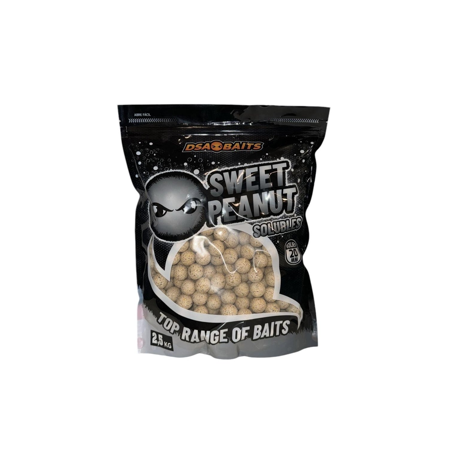 Boilies solubles de la marca DSA Baits, gama Top Range, sabor Sweet Peanut, especial para la pesca de carpfishing.