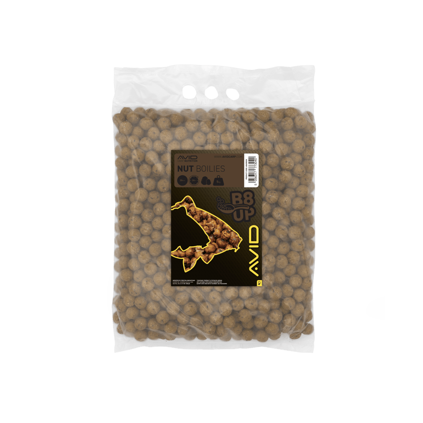 Boilies del marchio Avid Carp, gamma B8-Up, sapore Dado, soprattutto per il carpfishing.