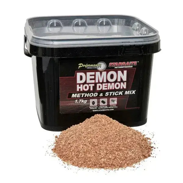 Cubo di 1700 grammi da Method Stick Mix del marchio Starbaits sapore Hot Demon a colori marronespeciale per il carpfishing. Questa esca dal profumo speziato è stata formulata per soddisfare le esigenze nutrizionali delle carpe e per agire rapidamente in acqua.