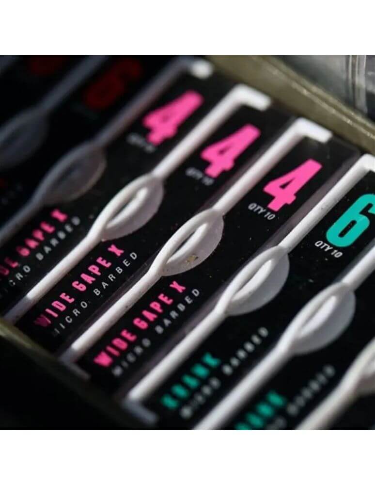 Ganci del marchio Korda della gamma Kamakura Wide Gape X, speciale per il carpfishing. Questo tipo di amo è caratterizzato da un calibro di filo maggiore e da una punta molto affilata con protezione in cera. Disponibile nei numeri 4, 6 e 8.