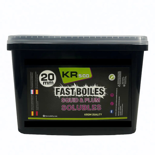 Borsa di boilies marca solubile Krom Quality gamma KR500, sapore Squid & Plum, da 20 millimetri, soprattutto per la pesca alla carpa.