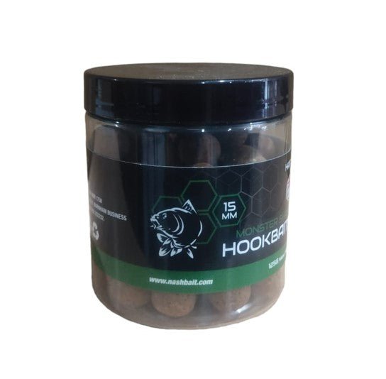 Bomboletta di hard hookbaits di marca Nash esche dure ad azione istantanea in Colore marrone scuro naturale in misure da 15 mm Monster Shrimp. Specialmente per il carpfishing.