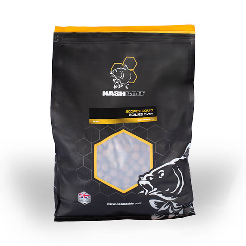 Borsa 1 chilo di boilies del marchio Nash sapore Scopex Squid a Colore naturale da 15 millimetri, soprattutto per il carpfishing.