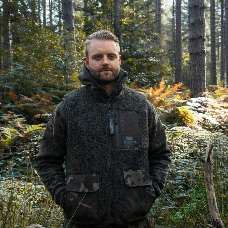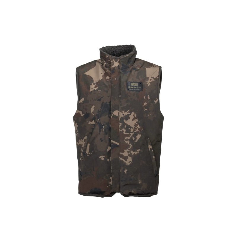 Gilet impermeabile senza maniche con marchio Nash modello ZT Sherpa con design in Colore camospeciale per il carpfishing.
