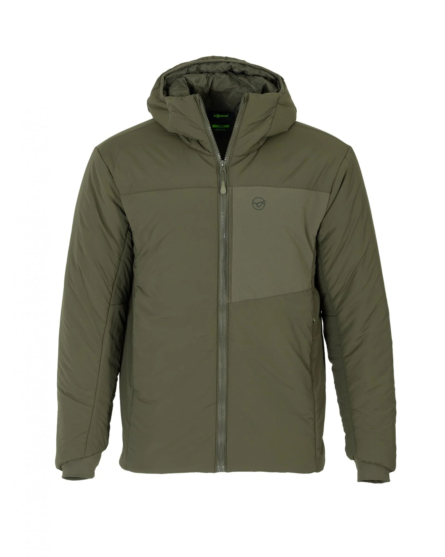 Giacca isolata del marchio Korda con design in Colore verde scurospecialmente per il carpfishing.