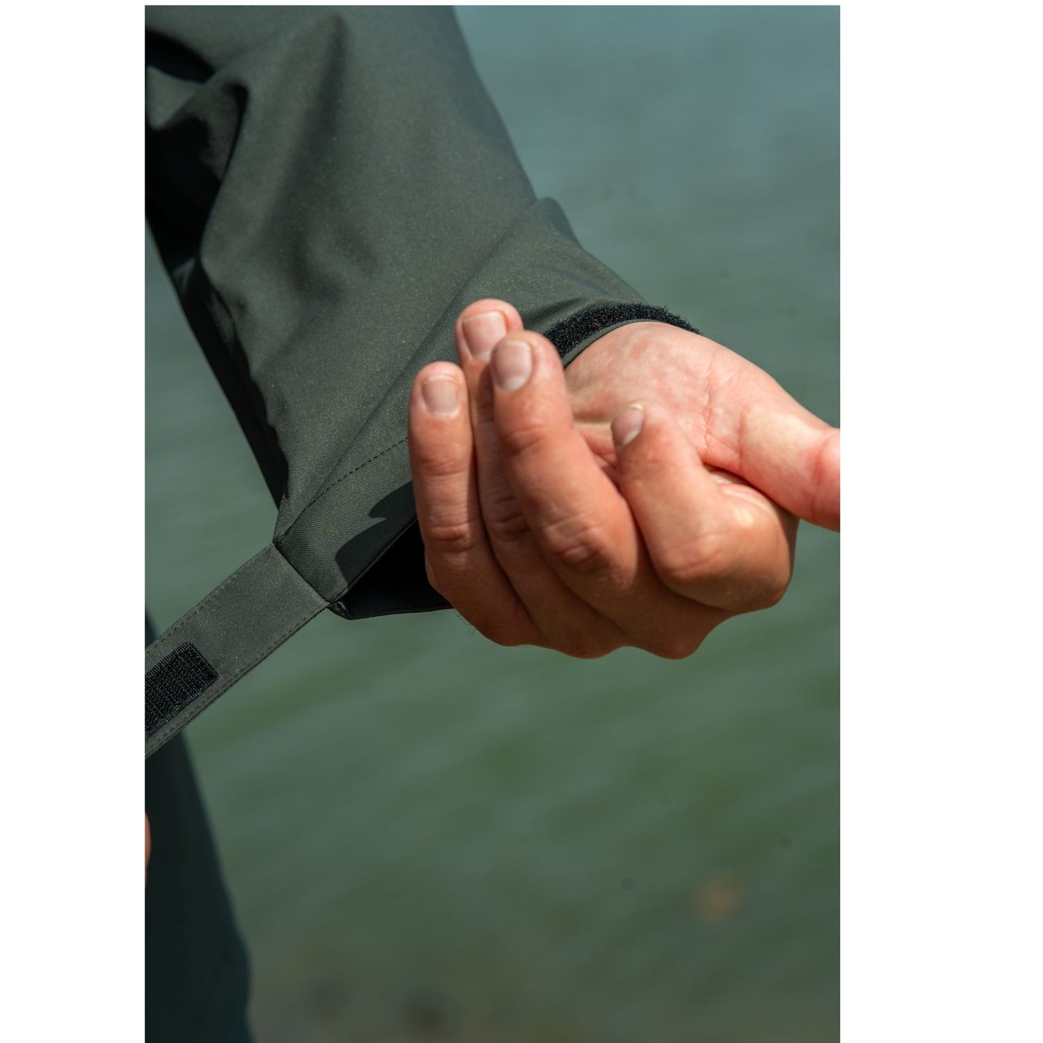 - Le maniche sono dotate di polsini angolati con ganci per allontanare l'acqua e mantenere l'asciutto