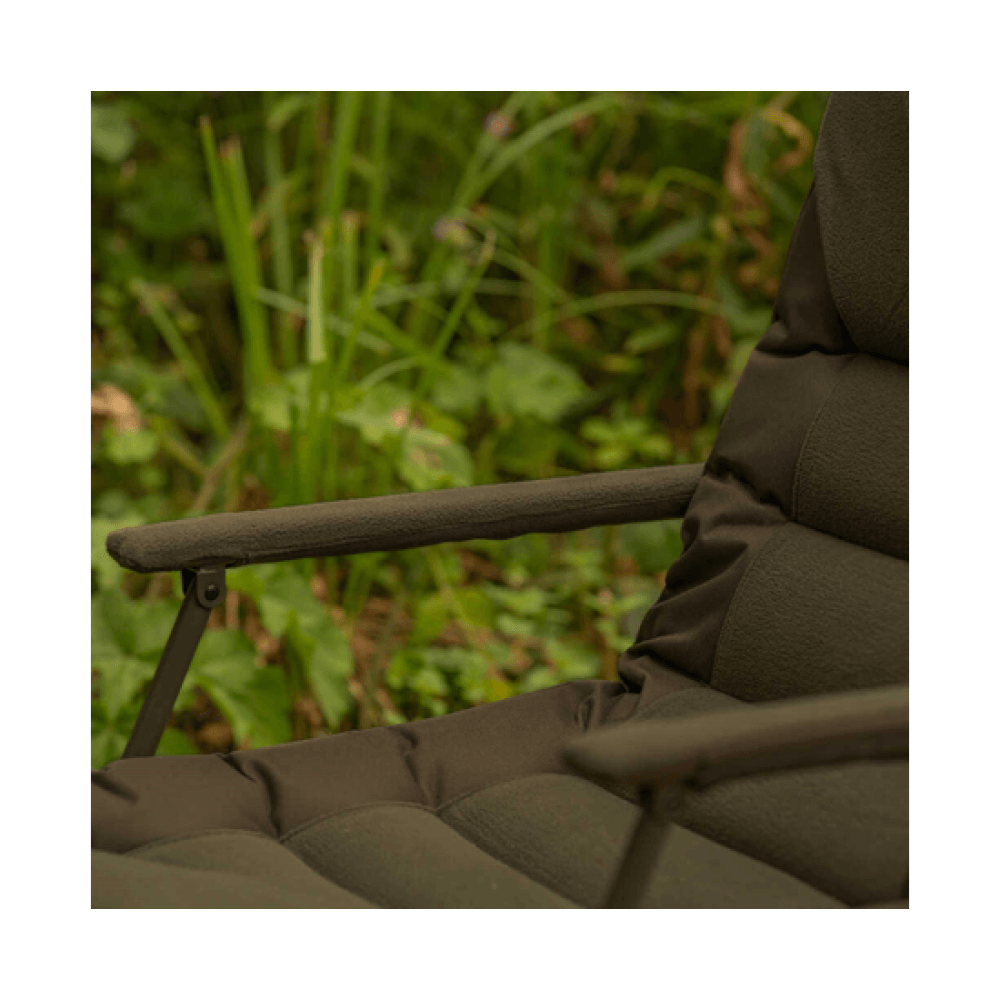Sedia reclinabile del marchio Avid Carp modello Benchmark Leveltech HI-Back a colori verdespeciale per il carpfishing.
