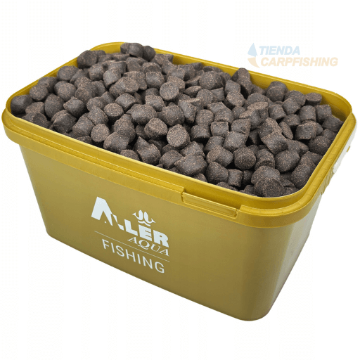 Secchio Pellet del marchio Aller Aqua, gusto Ippoglomazione, Perfetto per le tue sessioni di pesca da carpa.