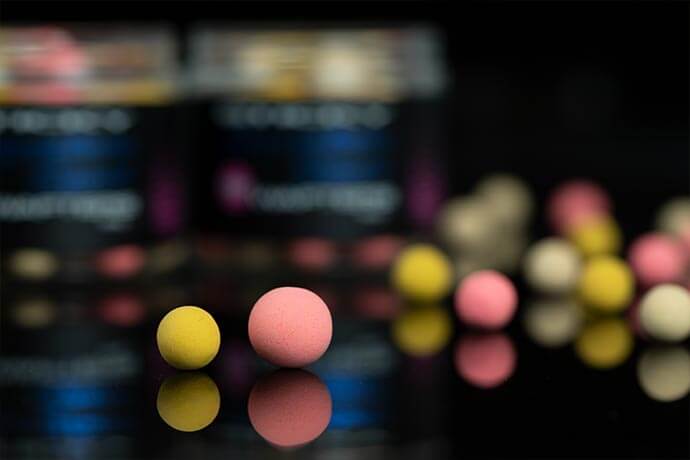 Bomboletta di boilies bilanciato 16 millimetri del marchio Sticky gusto calamaro in diversi colori fluoro, ideali per il carpfishing.