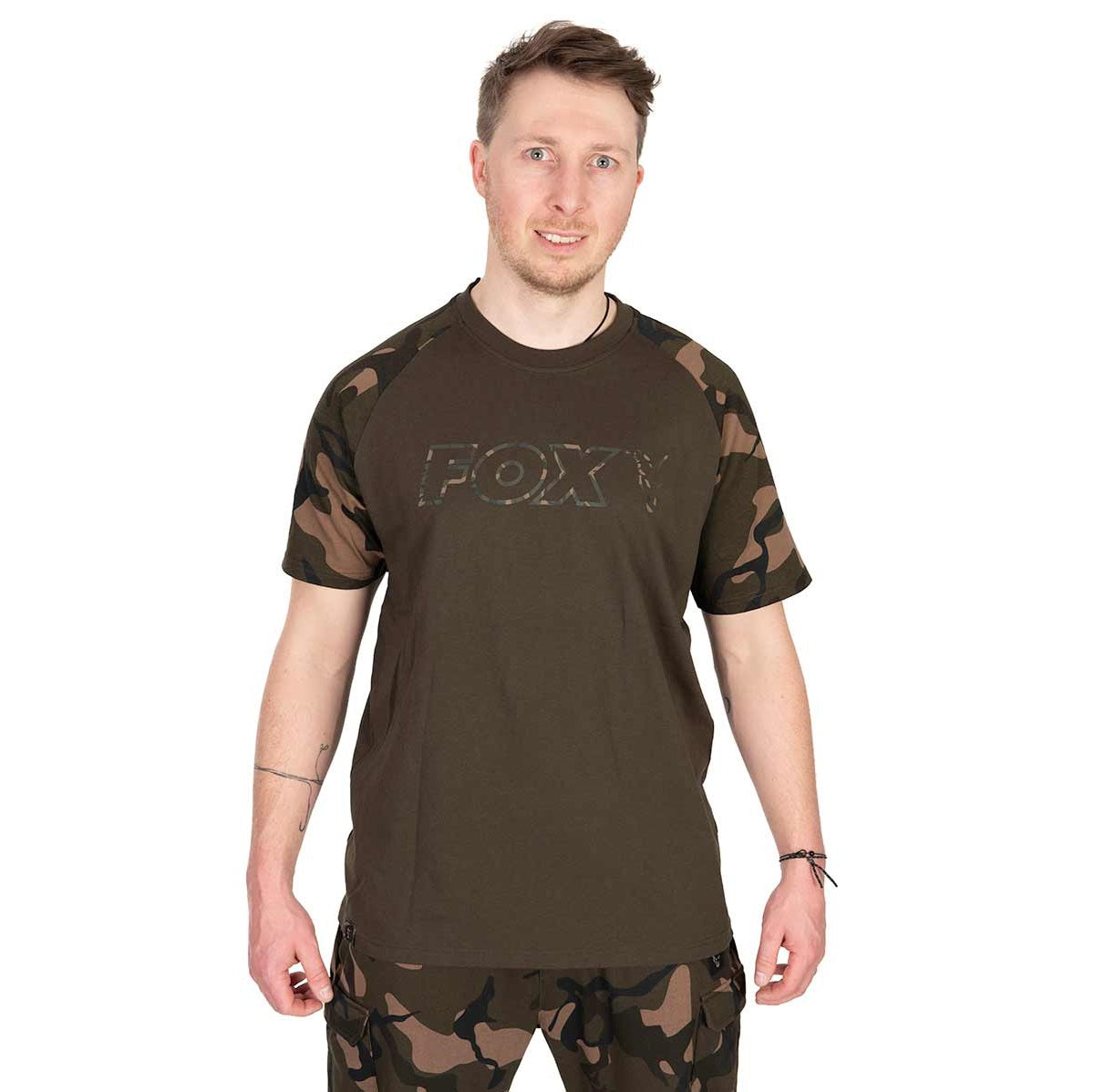 Maglietta con marchio Fox modello Outline T a colori kaki/camo, soprattutto per il carpfishing.
