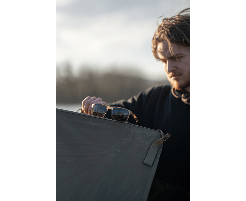 Occhiali da sole di marca Avid Carp, modello SeeThru Mirage a Colore marrone, con lenti grigio fumo, perfette per le vostre sessioni di carpfishing.