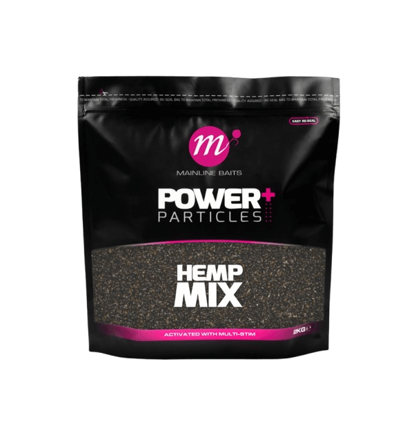Miscela di semi del marchio Mainline gamma Power+ con un assaggio di Hemp Mixspeciale per il carpfishing.