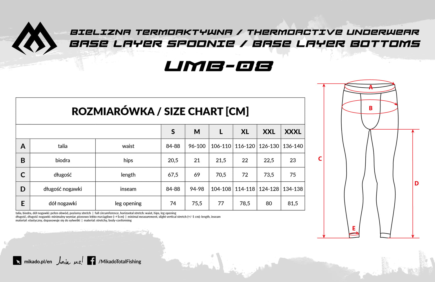 Pantaloni termici del marchio Mikado, modello Base Layer Bottoms, con design nero Colore, specialmente per il carpfishing.