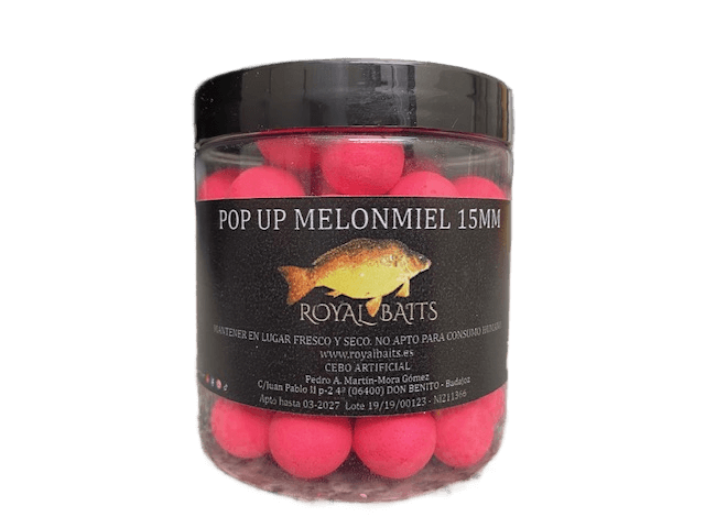 Pop Up galleggiante di marca Royal Baits 15 mm gusto Melone e Miele in {{1143842} rosso rosato, specialmente per il carpfishing.