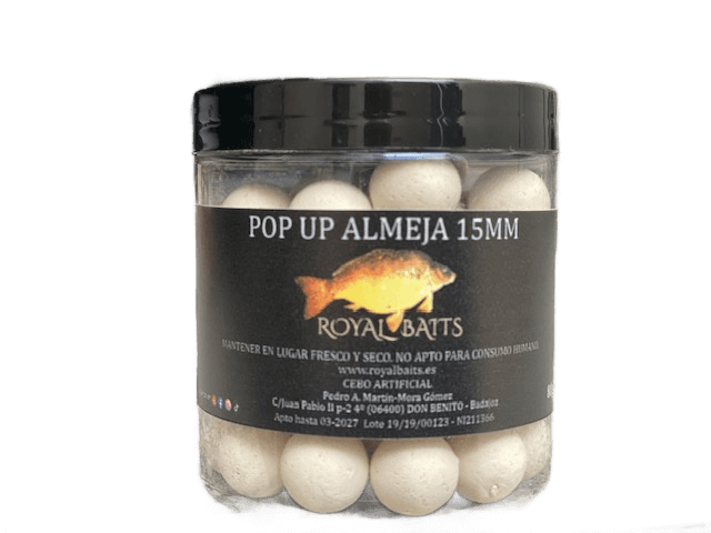 Pop Up galleggiante di marca Royal Baits 15 millimetri Sapore di vongola in {{1143842} bianco, specialmente per il carpfishing.