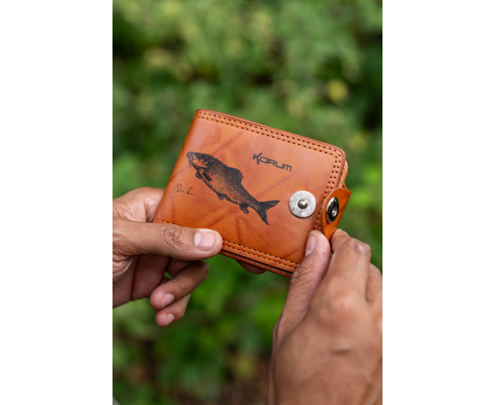 Portafoglio con marchio Korum, modello Classic Barbel, progettato per gli appassionati di carpfishing.