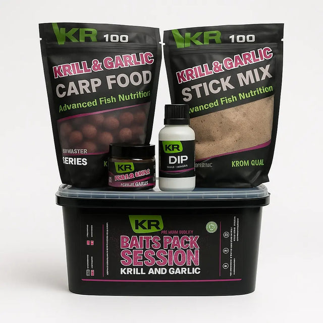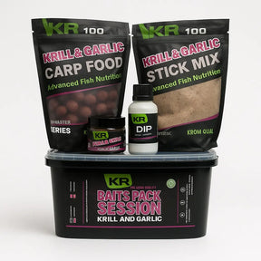 Molte esche Krom Quality gamma KR100 sapore Krill e Garlic, soprattutto per la pesca alla carpa.