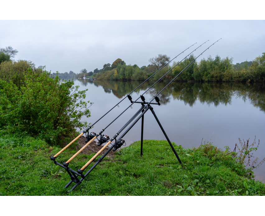 Marchio treppiede Korum, modello Deluxe, da 3 canne, speciale per il carpfishing.